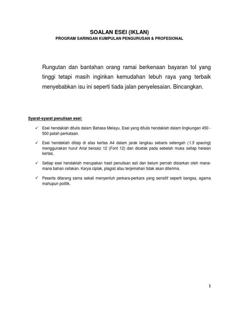 Contoh Soalan Esei Bahasa Melayu Esei Bahasa Inggeris Pegawai Tadbir
